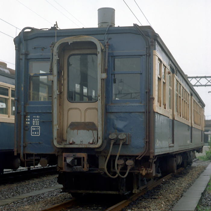 | クモハ51202(静ママ) 65.8.17伊那松島機関区 飯田線使用 モハ43008(33年大阪鉄工製造宮原電車区配置) →クモハ43008(59.6.1改番) →クモハ51202(63.11.14大船工3扉化改造スカ線使用) →クモハ51850(66.3.25浜松工身延線用低屋根改造) |